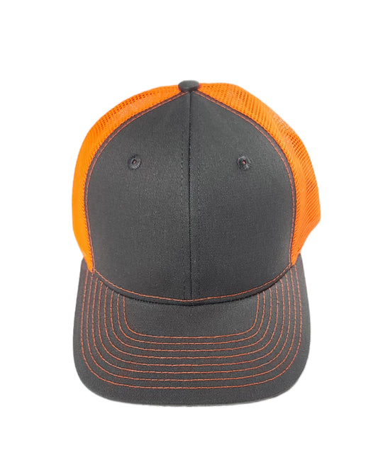 Neon Orange and Dark Gray UV Reactive Mesh Trucker Hat