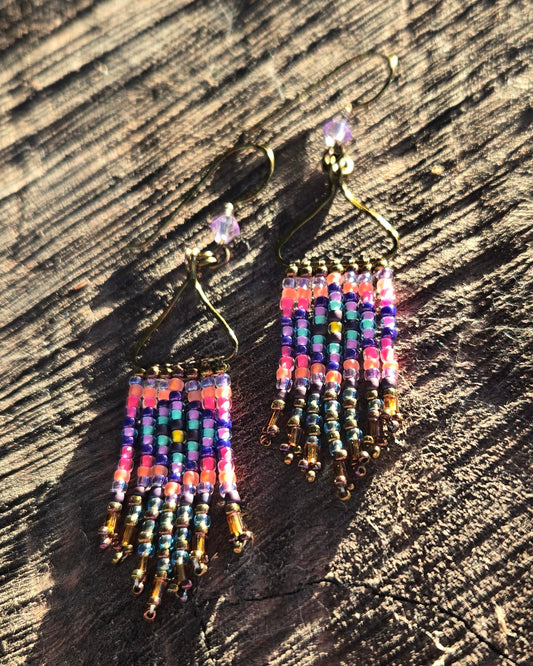 Bronze Beaded Sunset Rainbow Mix Peyote Stitch Earrings