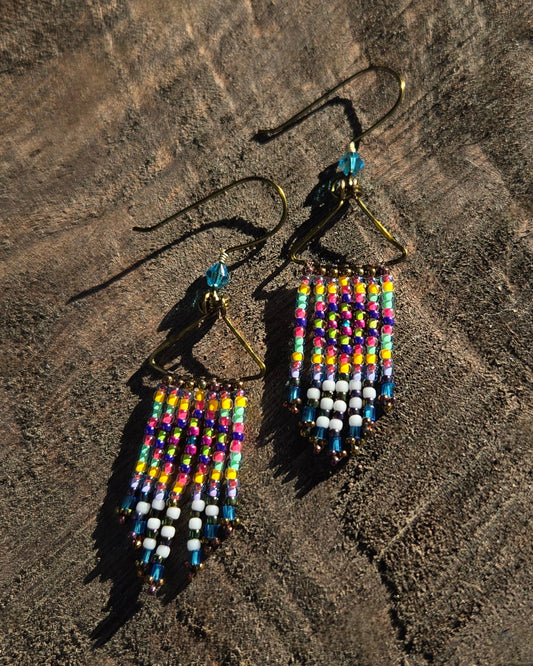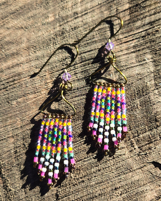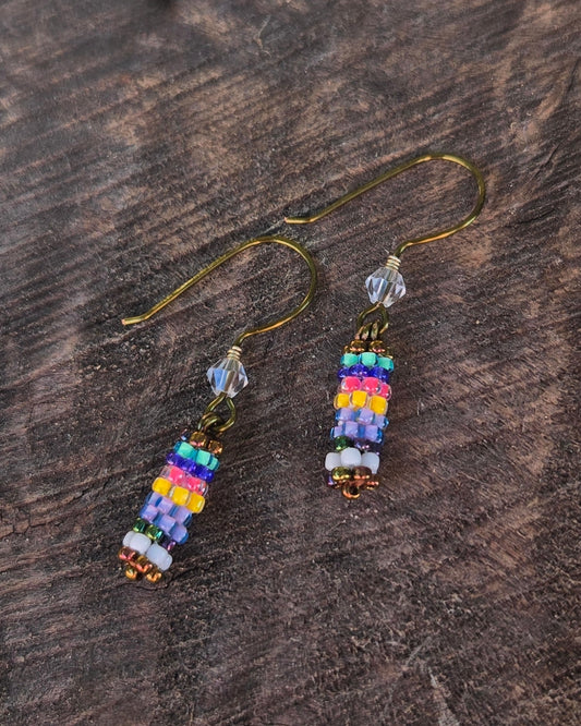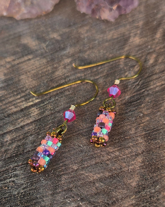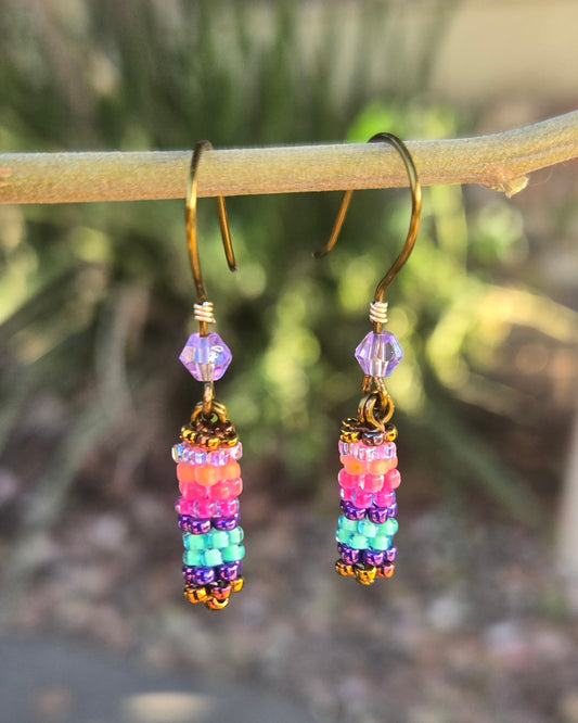 Bronze Beaded Sunset Rainbow Mix Peyote Stitch Earrings