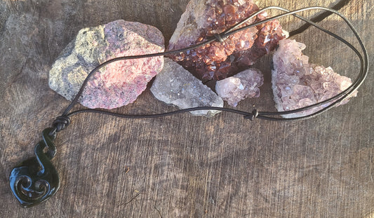Maori Triple Twist Whale Tail Fish Hook Jade Necklace