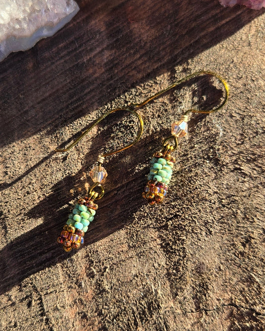 Bronze Turquoise Beaded Peyote Stitch Earrings