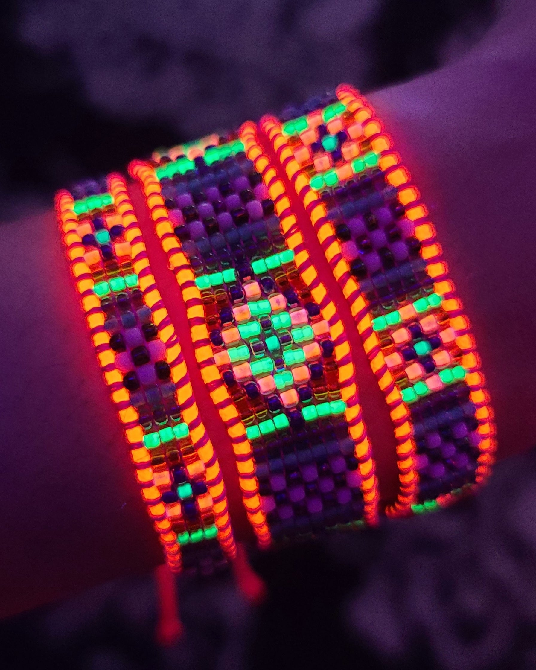 Perfect for any occasion and they also glow under black light with UV reactive beads. Lightweight and flat making it super comfortable to wear.